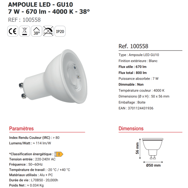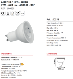 Miidex - Lampe LED 7W - GU10 - 4000K - 670 lumens - Réf : 100558