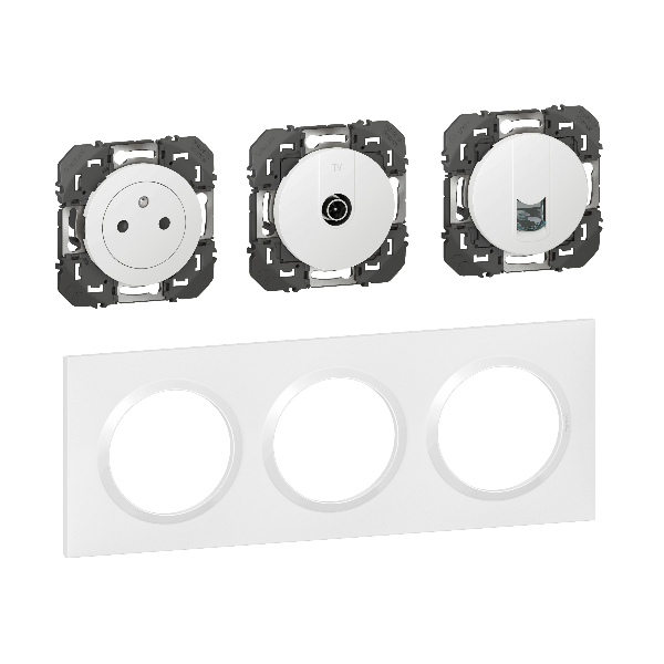 Legrand Dooxie - Lot plaque triple + PC + 1 prise TV + 1 prise RJ45 Cat.6 STP complet