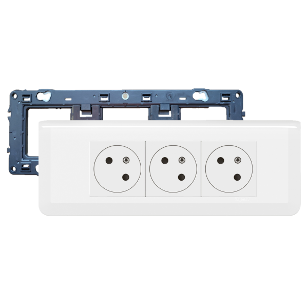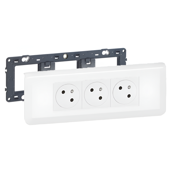 Legrand - Mosaic Link - LOT - Triple prise de courant 2P+T avec plaque blanche et support - Réf : 278165L+080253+078816L