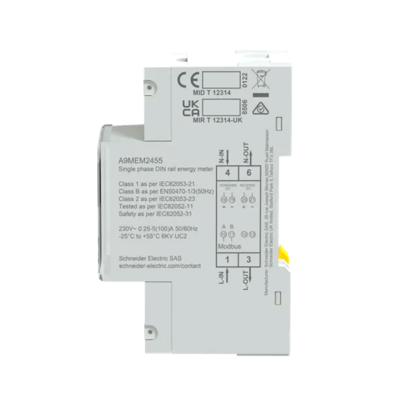 Schneider - Acti9 iEM - compteur d'énergie mono - 100A - afficheur Modbus - Réf : A9MEM2455