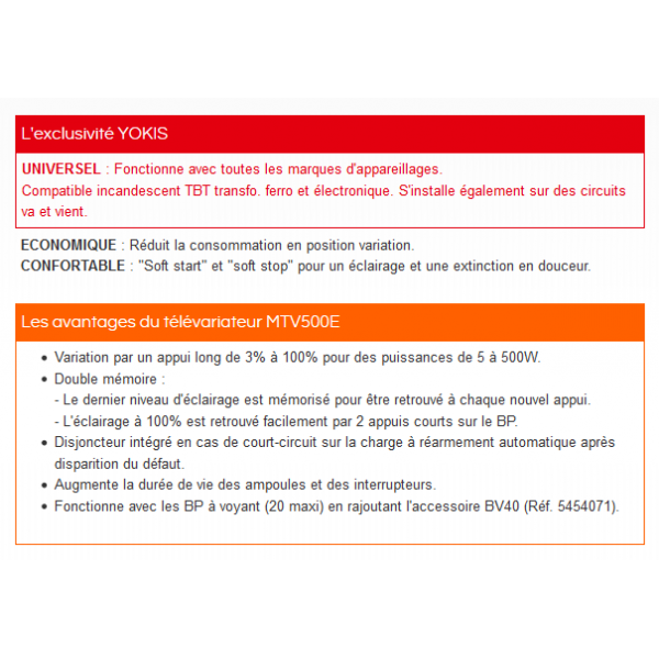 Yokis - Télévariateur numérique Encastré 500W - Réf : MTV500E