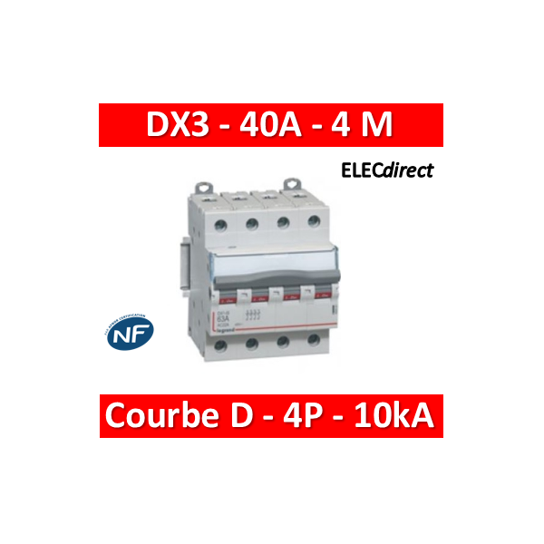 Legrand - Disjoncteur 4P DX3 40A - 10kA - courbe D - Réf : 408121