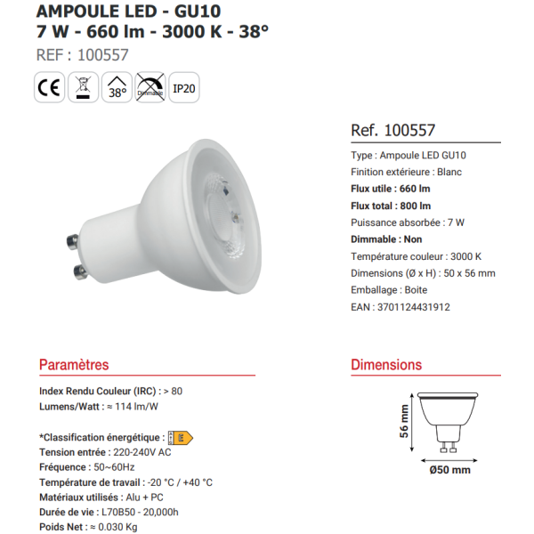 Miidex - Kit spot encastré BBC Fixe blanc 7W - 3000K - NON dimmable - Réf : 7718 + 100557