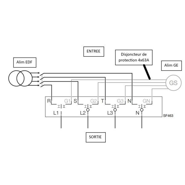 Hager - Inverseur de source manuel tétrapolaire 4P 63A - 3 positions 1/0/2 - 8 modules - Réf : SF463