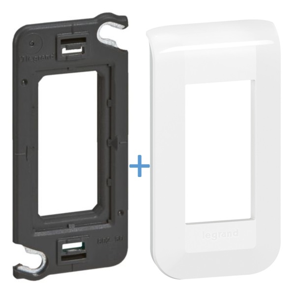 Legrand Mosaic - Plaque 1 module - 1 poste + support - Réf : 078801L+080250