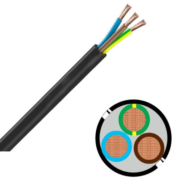 Câble souple H07RN-F 3G2.5 - Coupe au mètre max. 30 mètres - Réf : CABLERNF3G2.5
